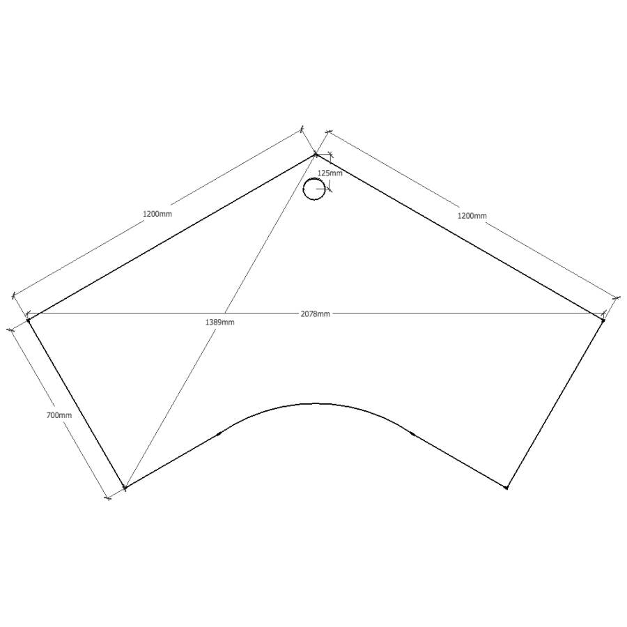 120. Deg Workstation Table Top Only2078mm Overall Width x 1206mm Overall Depth – 1 x 80mm Dia. Cable Entry Hole