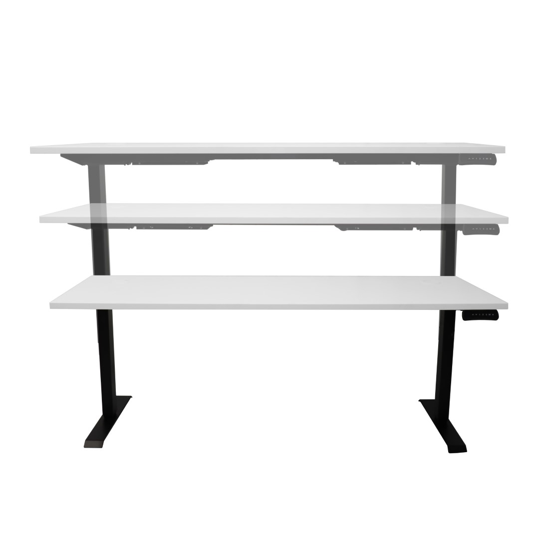 With 3 standard top sizes and 2 frame colours to choose from, and the ability to fit any custom top ranging from 1200mm to 2000mm Wide x 600mm to 800mm Depth. The Boost is our most versatile height adjustable frame.