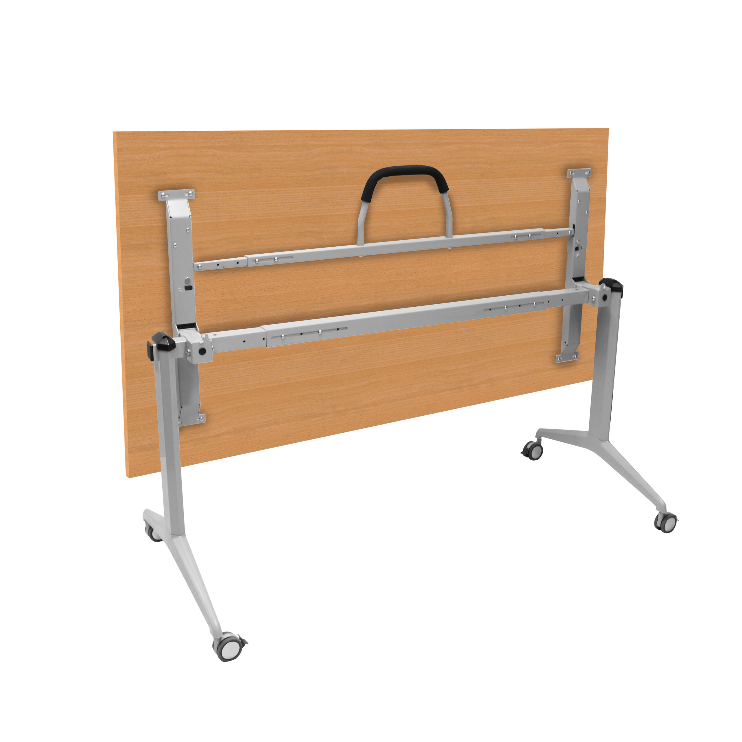Budget Flip Top Table1500mm W x 750mm D x 750mm HPrecious Silver P/C Frame – Padded Pull Handle – Locking Castors