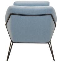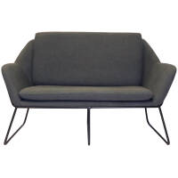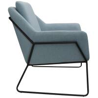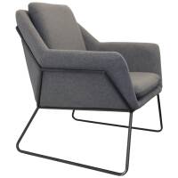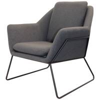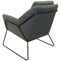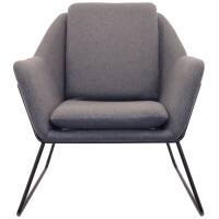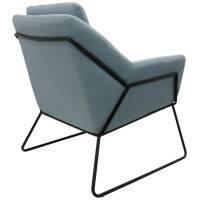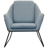 Lounge arm chair suitable for reception or break out areas. Upholstered in light blue or charcoal ash fabric, with a sturdy black solid tube frame with rubber feet.