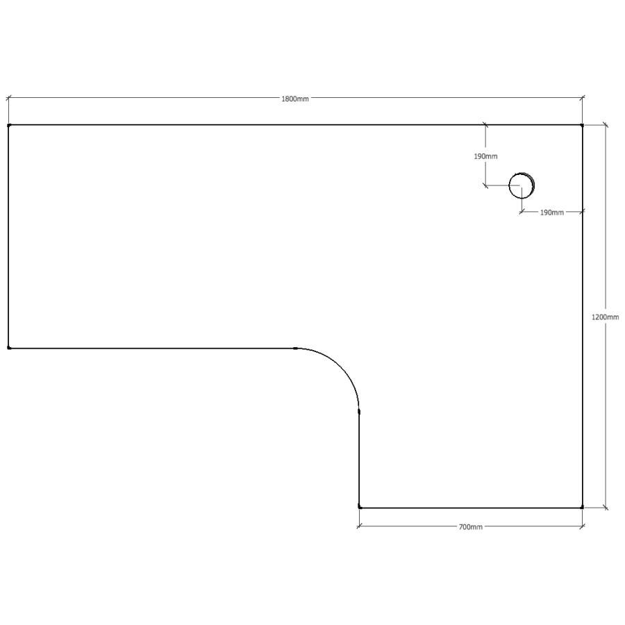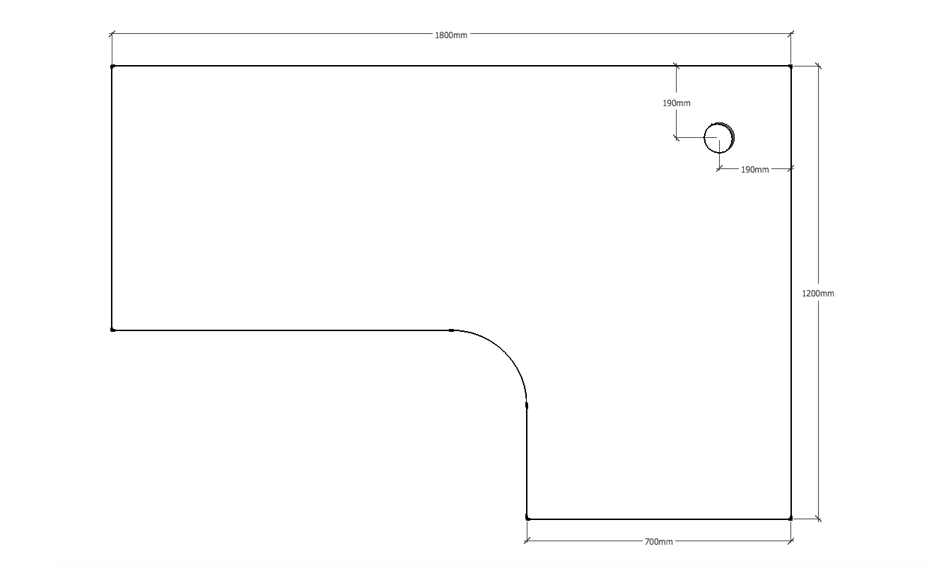 Corner Workstation Table Top Only1800mm x 1200mm x 700mm D x 25mm – Matching Rigid Edging – 1 x 80mm Dia. Cable Entry Hole