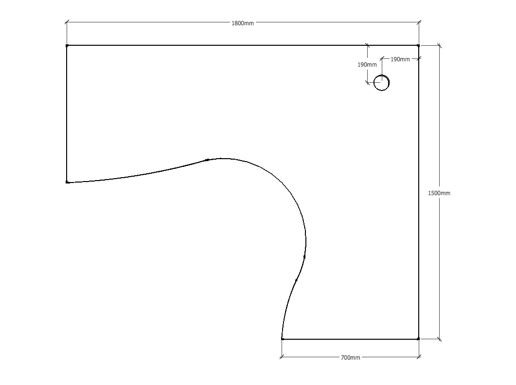 Corner Workstation Top with 1 x 80mm Dia. Cable Entry Holes 1800mm x 1500mm W x 700mm D