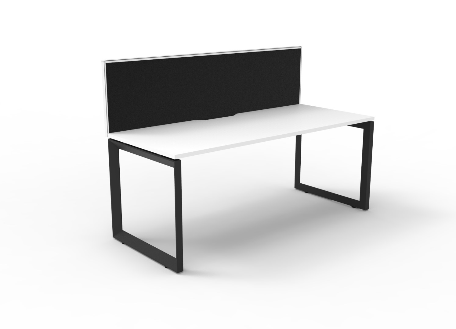 The bevelled edge loop leg finishes each workstation run with a premium look, and the matching dividing screen adds privacy and noise reduction to each workstation.