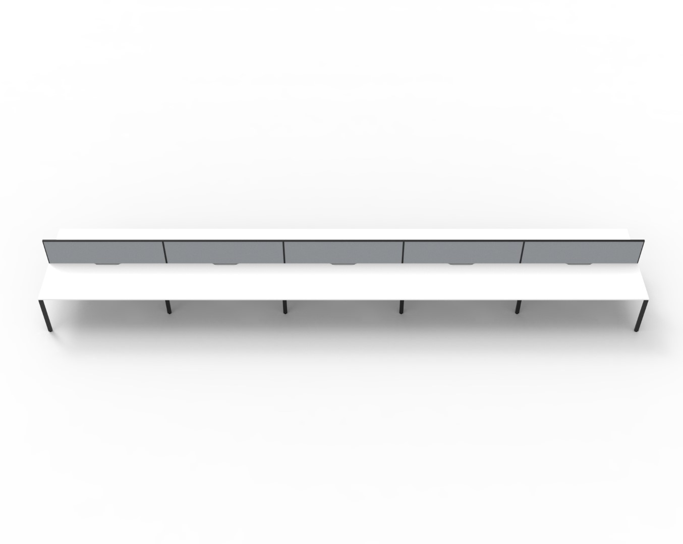Maximise space and create an efficient working environment with Deluxe Rapid Infinity. 750mm deep Enviroboard tops, with scallop for cable access, and a recessed leg to create full leg access in long runs of workstations.