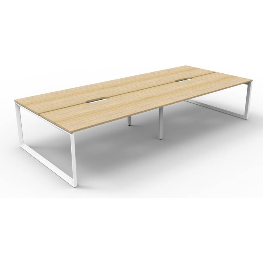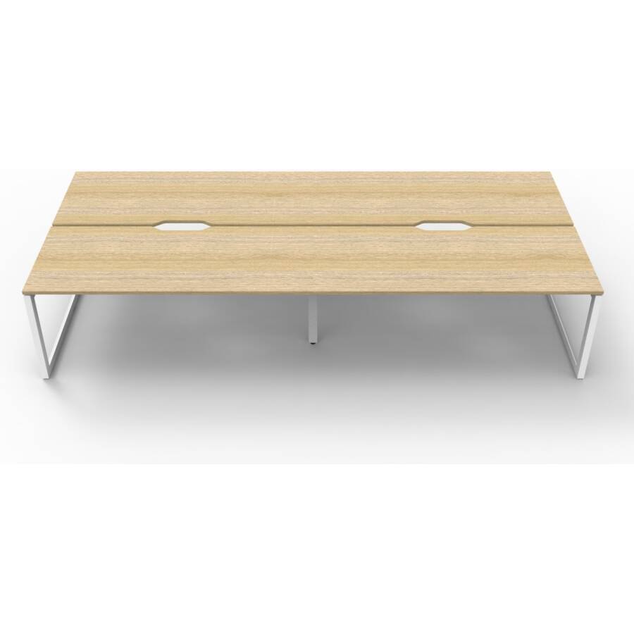 3000mm W x 1530mm D x 730mm H (Overall), 1500mm W x 750mm D x 730mm H (Per User), 60mm x 45mm Bevelled Edge Loop Leg Underframe. 30mm Cable Access Void In Between Double Sided Users – Infill Rail Avail. For Additional Cost