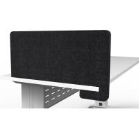 The black polyester surface is made of black polyester fibre, pinnable and fire- retardant material. The screen is also moisture proof and anti-mildew. No tools necessary to install, simply slide onto your desktop and move whenever necessary.
