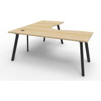 E0 Enviroboard Worksurface With 80mm Dia Cable Entry Hole | 1800mm W x 1800mm W x 750mm D x 730mm H | 60mm x 30mm Splayed Leg, Powdercoated Underframe | Dual Cross Bar For Added Stability | Adjustable Levelling Feet