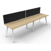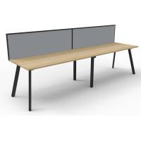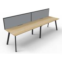 3000mm W x 780mm D x 730mm H ( Overall ), 1200mm W x 750mm D x 730mm H Per User | 60mm x 30mm Splayed Leg | 495mm H x 30mm T Pinnable Fabric Privacy Screen|Adjustable Levelling Feet|Dual Cross Bar For Added Stability