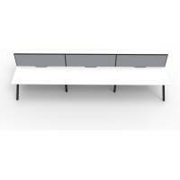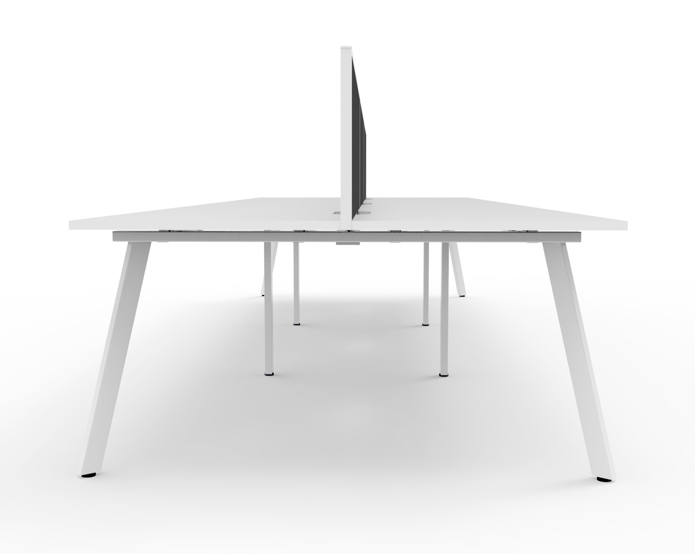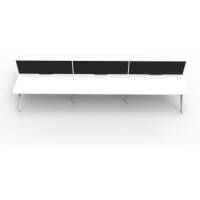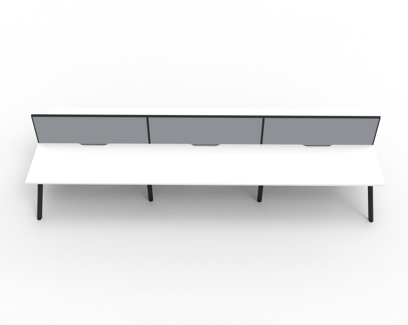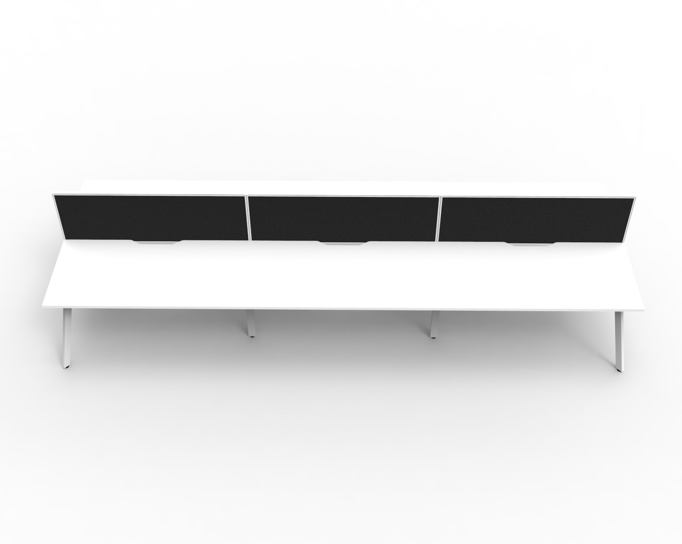E0 Enviroboard Top With 410mm W x 50mm D Scallop Cable Access | 4500mm W x 1530mm D x 1200mm H ( Overall ), 1500mm W x 750mm D x 730mm H Per User | 60mm x 30mm Splayed Leg, P/C Underframe | 495mm H x 30mm T Pinnable Fabric Privacy Screen | Adjustable Levelling Feet|Dual Cross Bar For Added Stability