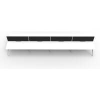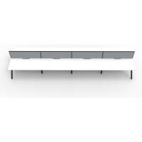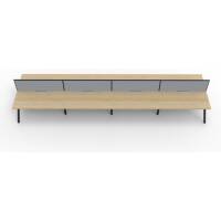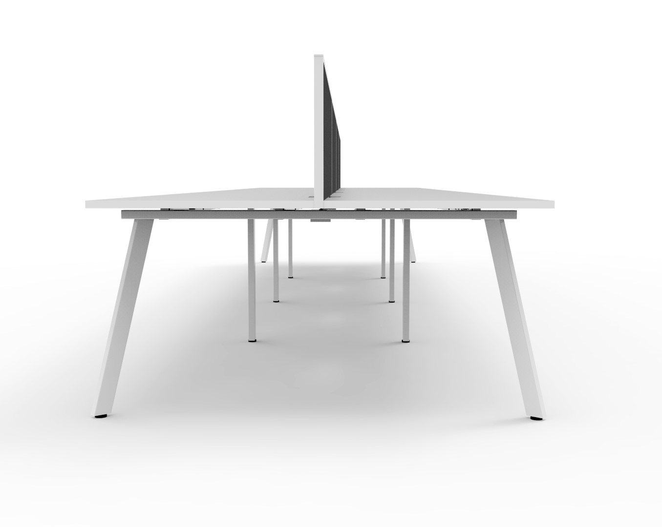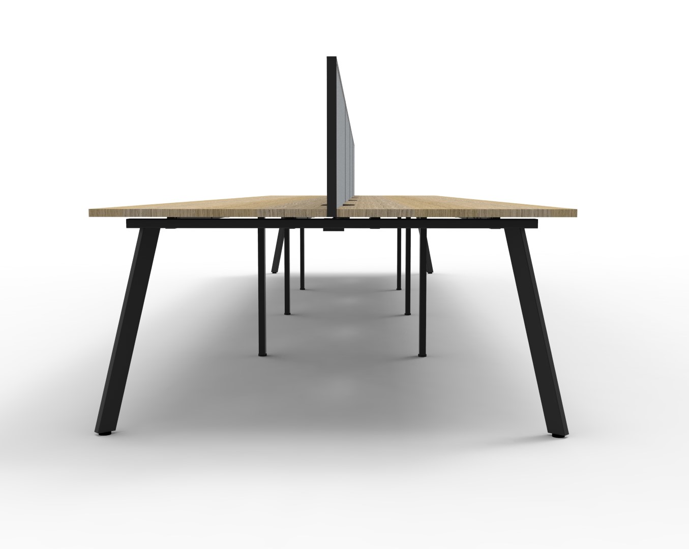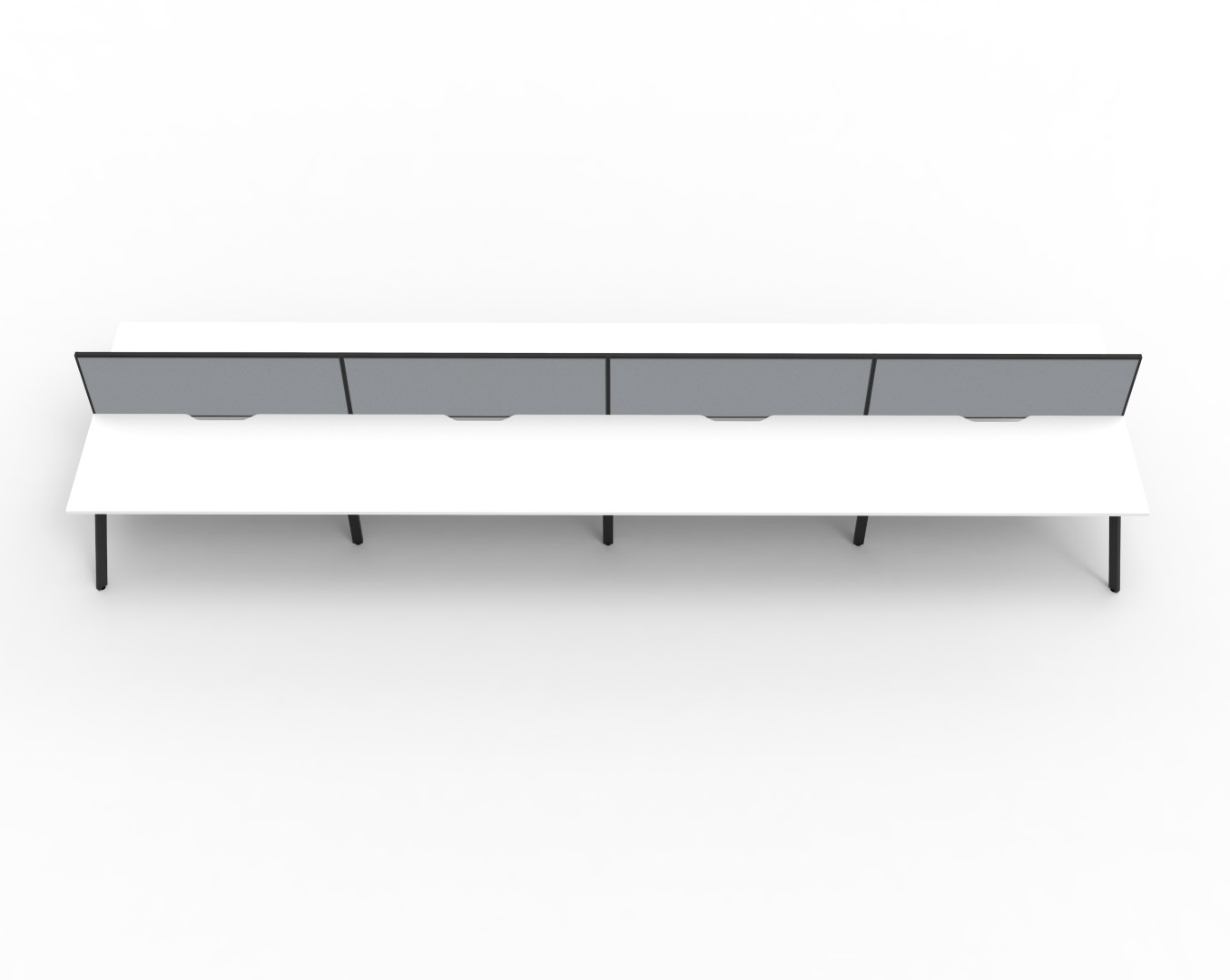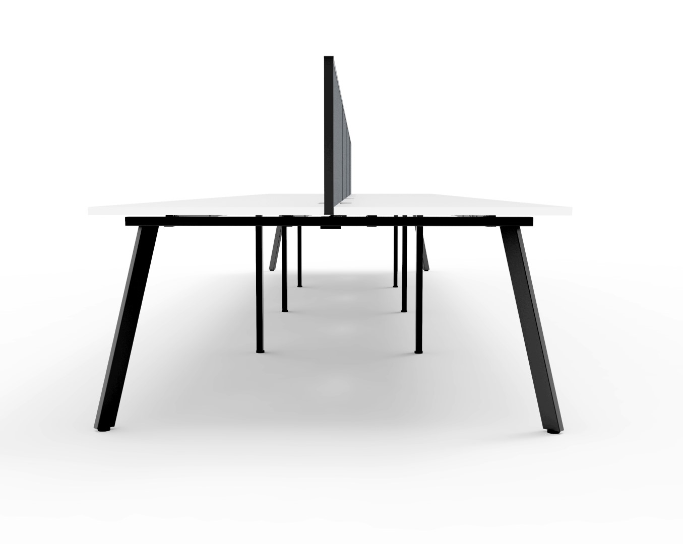 E0 Enviroboard Top With 410mm W x 50mm D Scallop Cable Access | 6000mm W x 1530mm D x 1200mm H ( Overall ), 1500mm W x 750mm D x 730mm H Per User | 60mm x 30mm Splayed Leg, P/C Underframe | 495mm H x 30mm T Pinnable Fabric Privacy Screen | Adjustable Levelling Feet|Dual Cross Bar For Added Stability