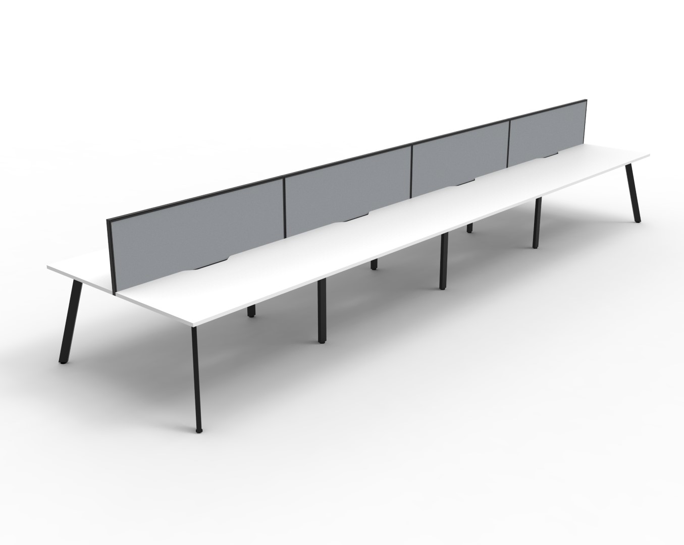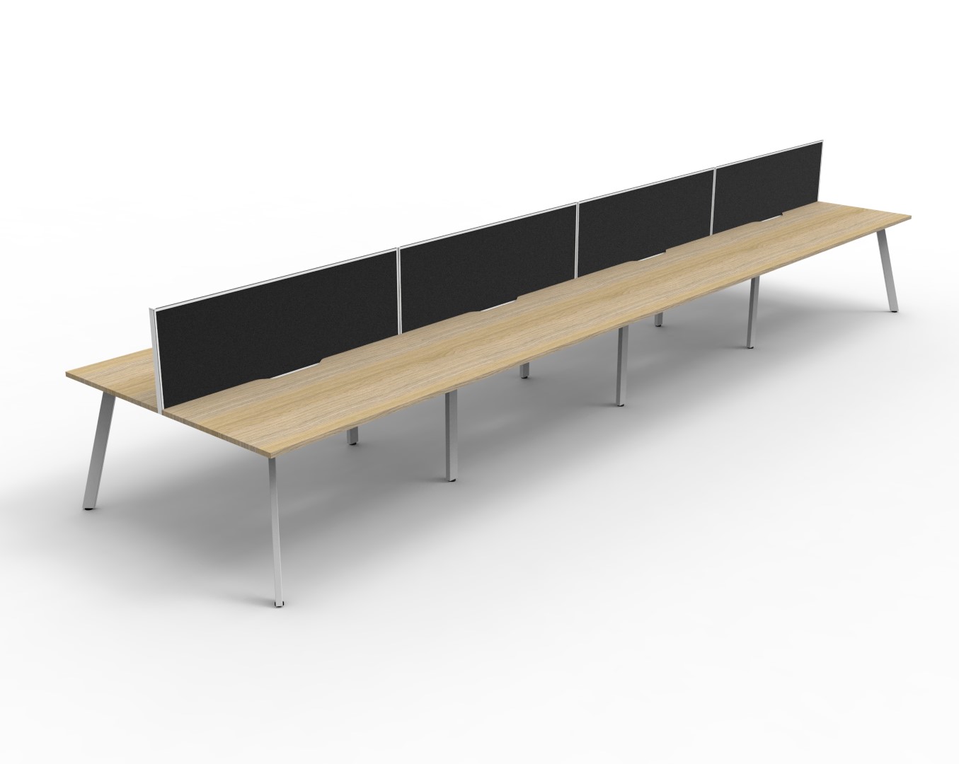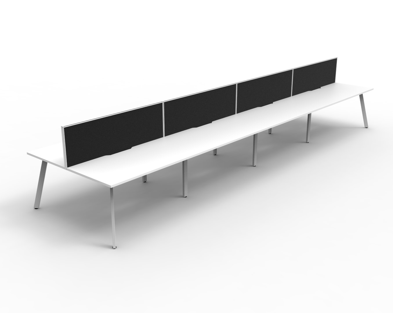 Eternity 8 Person Double Sided Workstation – With Screens 1500mm W x 750mm D Scallop Tops