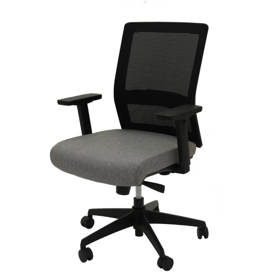 High quality mesh task or executive arm chair. Synchronised back rest and seat allow for adjusting position to suit task, while seat slide and lumbar support the back and legs.