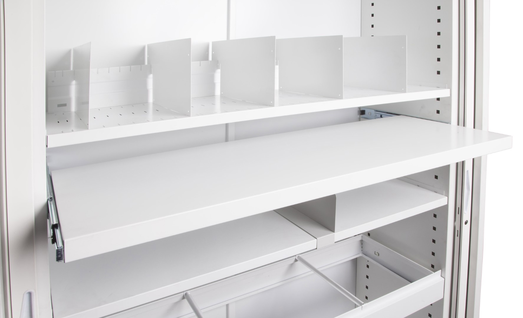 The pull out shelf allows you to sort files at the Tambour unit.