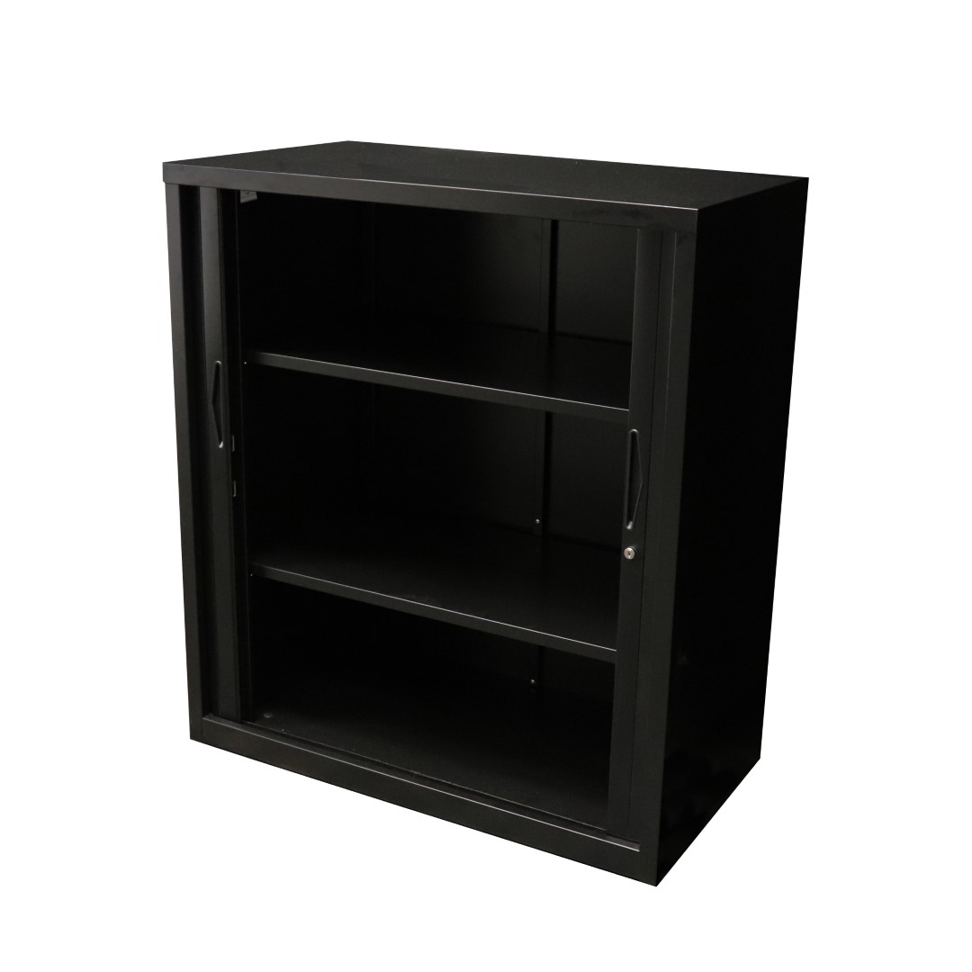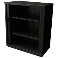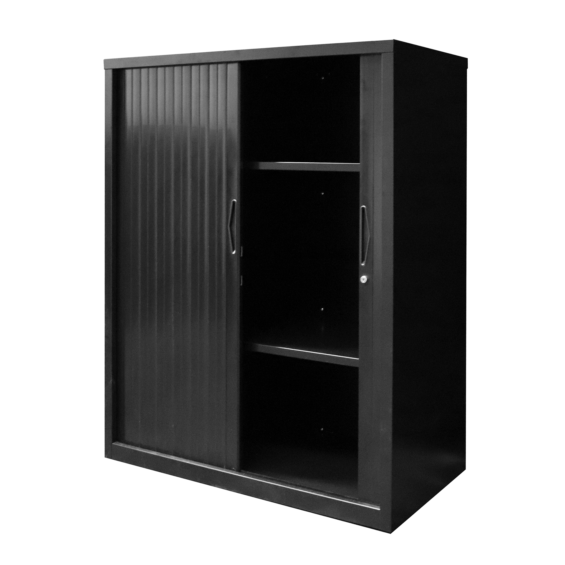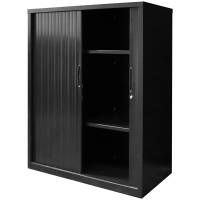 The 1200mm Wide Go Tambour door cupboard needs no space to open doors, saving valuable floor space and can fit easily into a workstation layout with a range of heights and 2 widths to choose from.