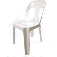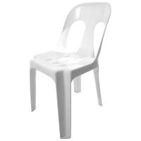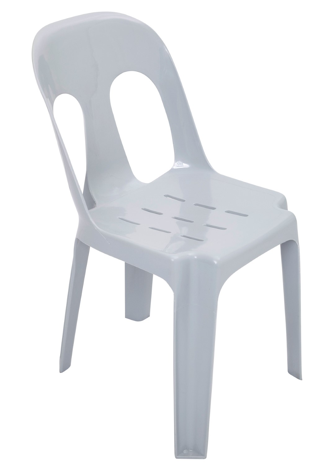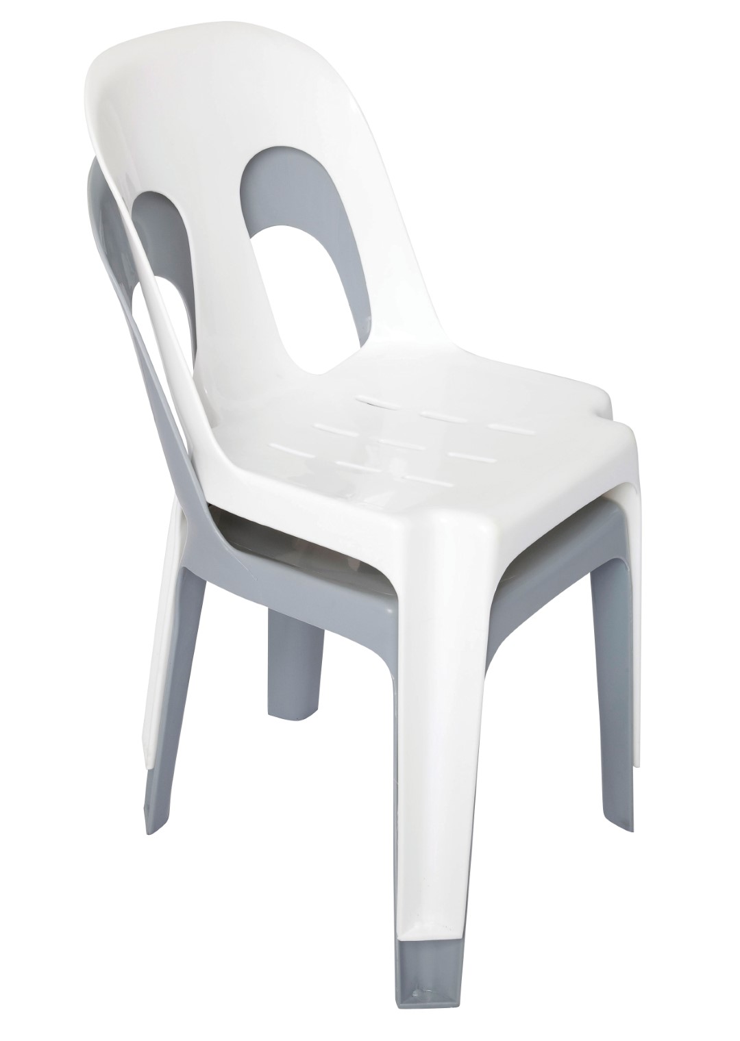 Incredibly durable polypropylene stacking chair. This is a one piece moulded Monobloc chair, tested to Australian standards, will hold up to 150kg and guaranteed not to break under intended use.