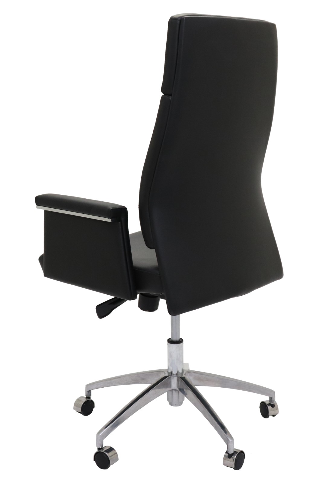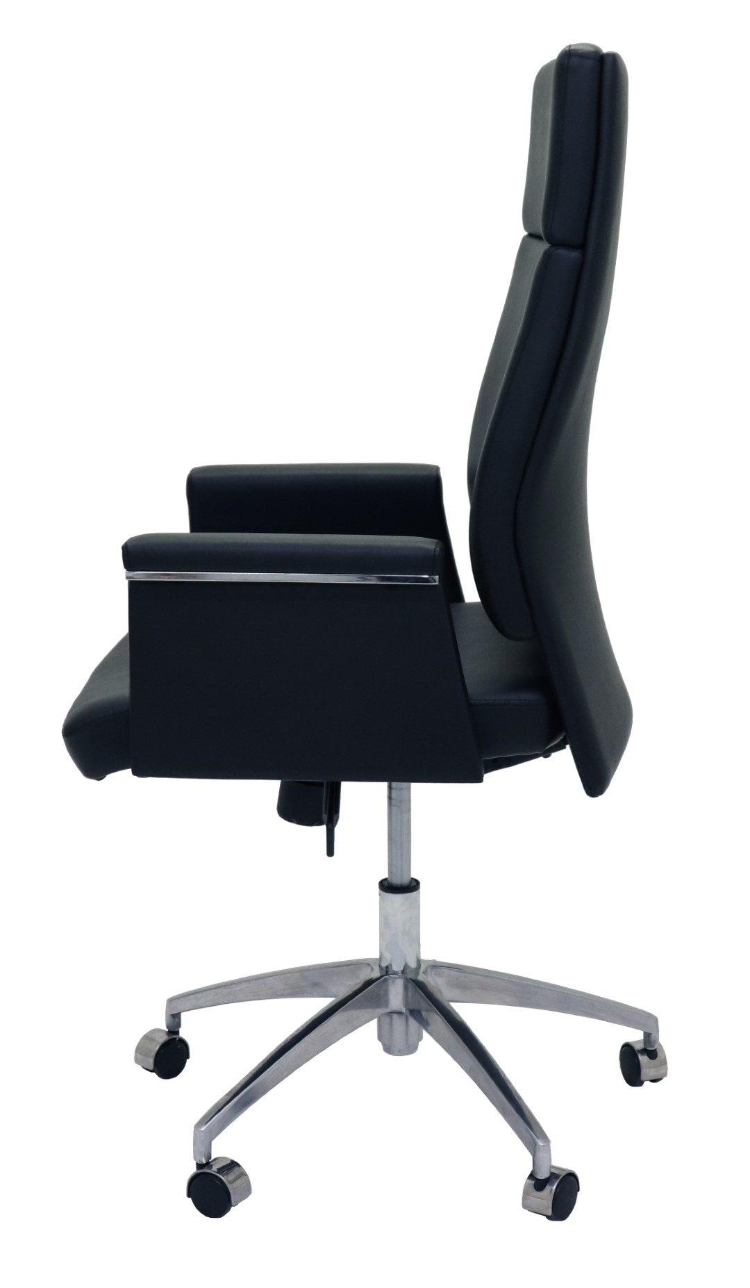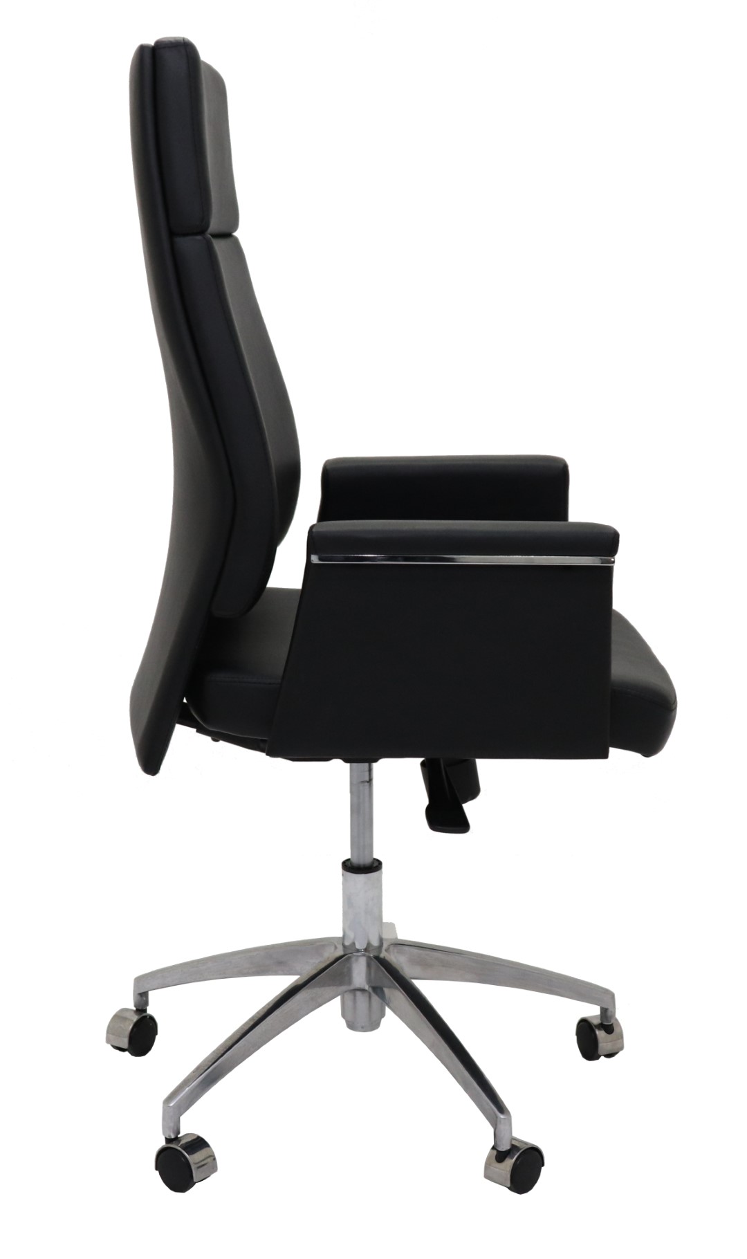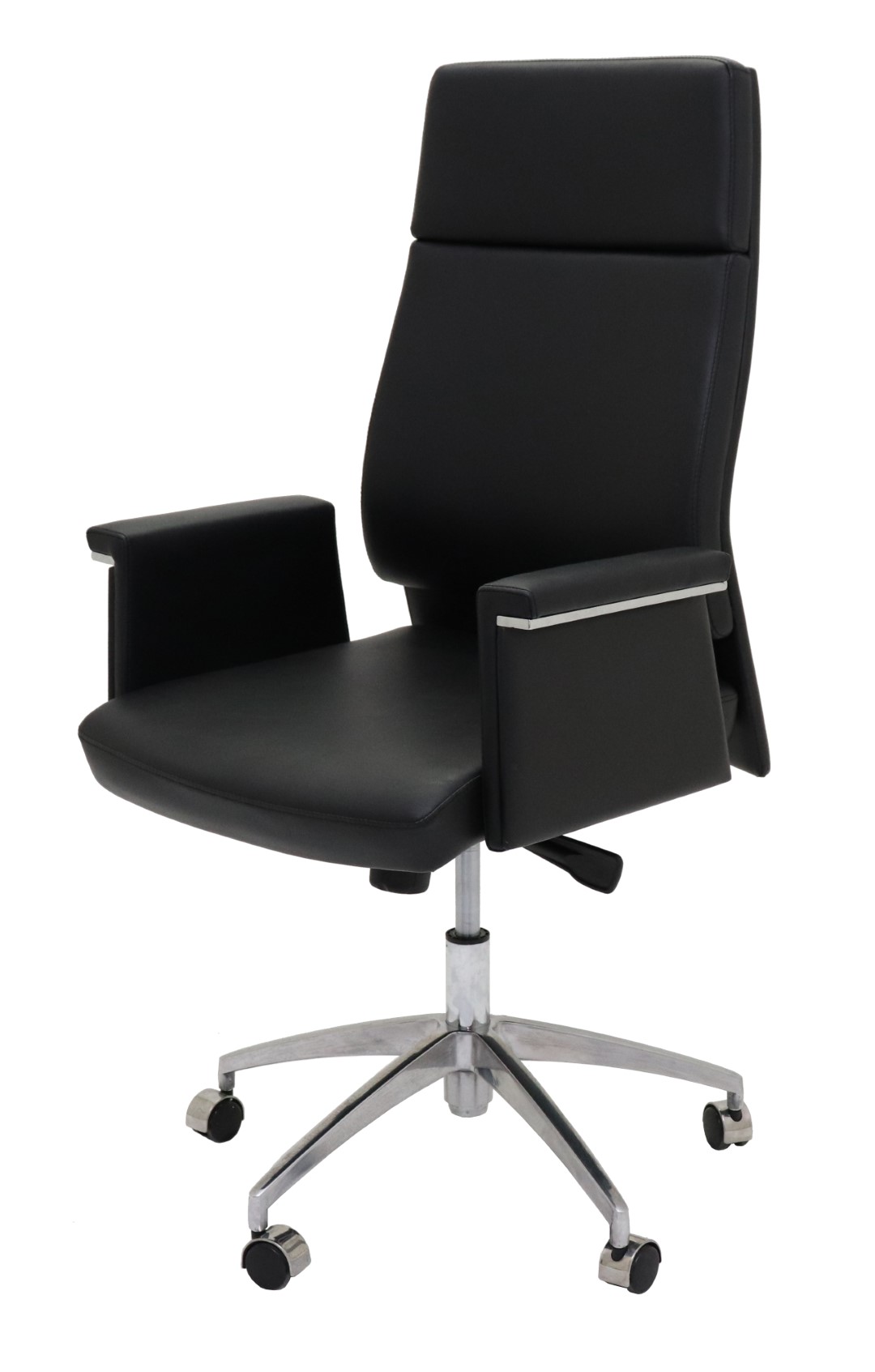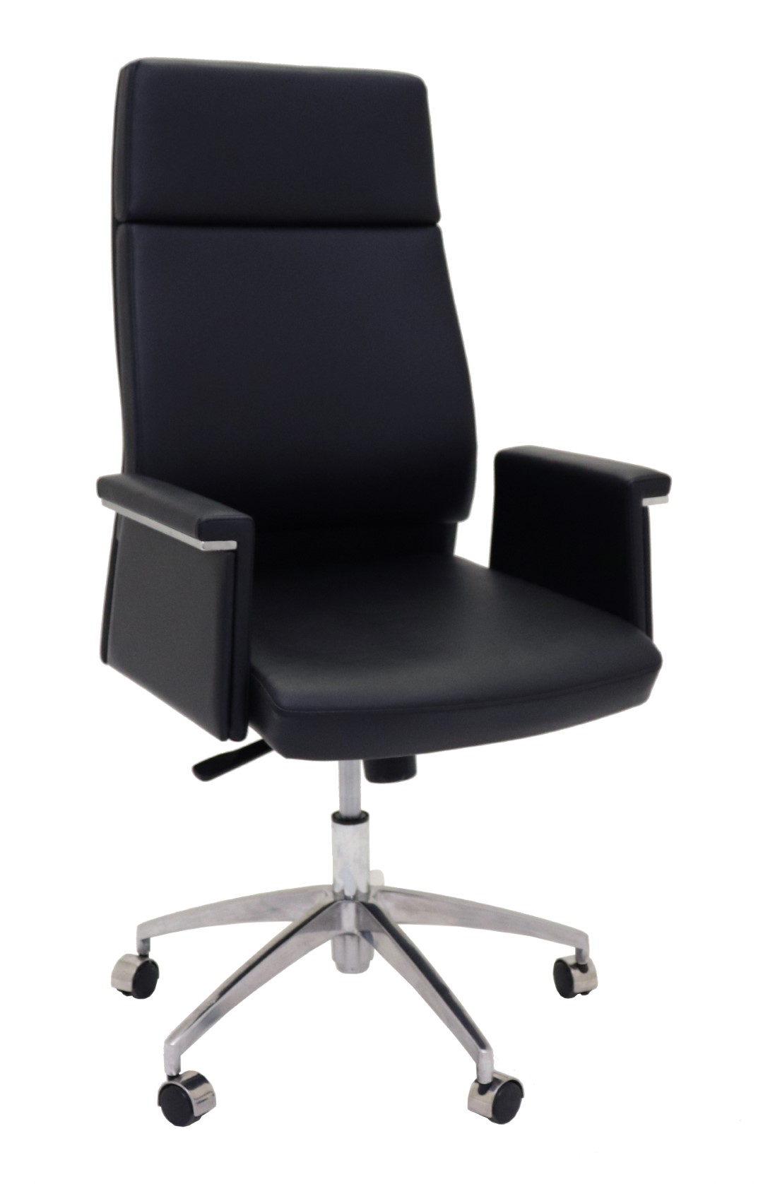 The Pelle high back is a modern high back executive chair offering a combination of design and comfort. With a tapered high back, upholstered arm rest and chrome 5 star chrome base the Pelle has an impressive look.