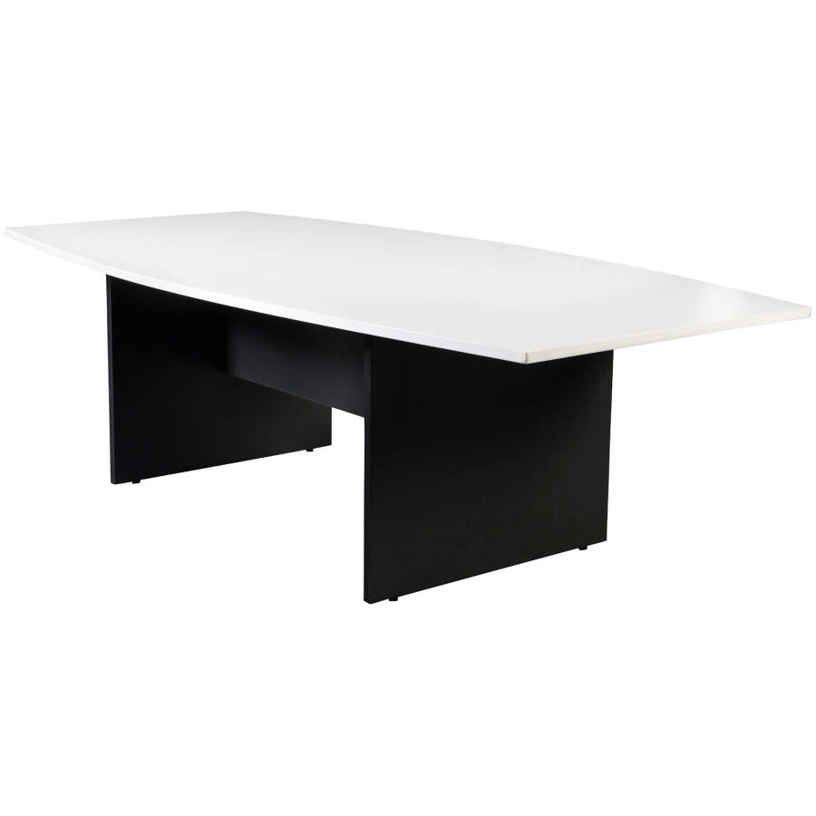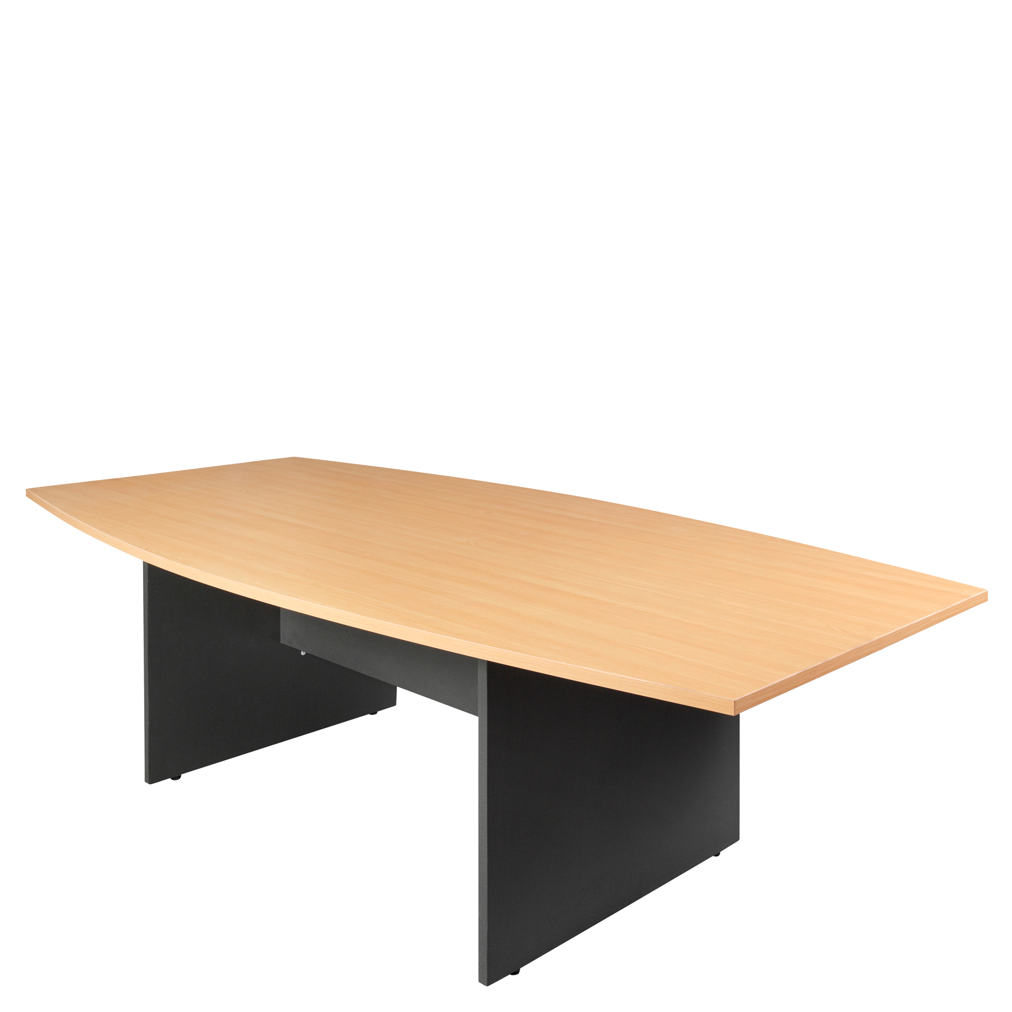 With its Boat Shaped configuration maximizing the seating capacity the Logan Boardroom table is a sensible choice for any meeting area. At 2400mm long and 1200mm wide, it is spacious enough yet still compact so as to not consume a room. Made of 25mm melamine all over, with adjustable feet and available in two colour combinations (beech, cherry or white all on an ironstone base) the Logan Boardroom Table makes a great choice.