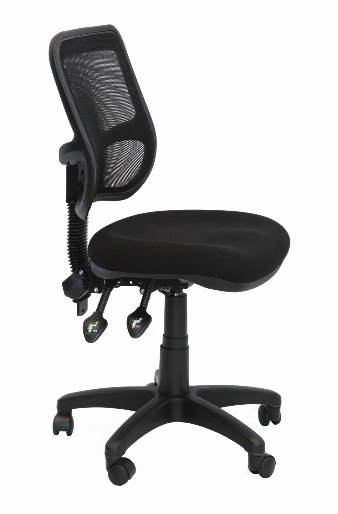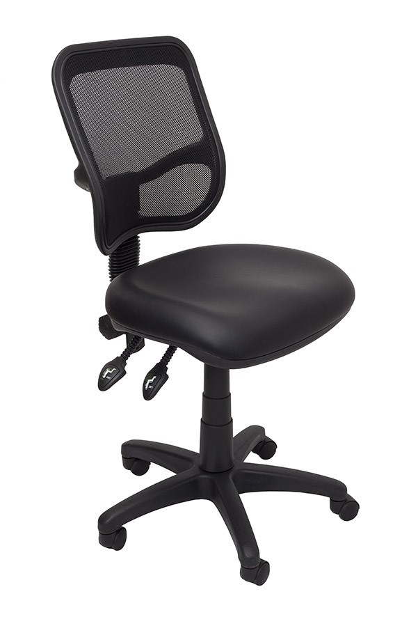 With good size mesh back, moulded foam seat available in fabric or PU for easy cleaning. Adjustable arms an optional extra.