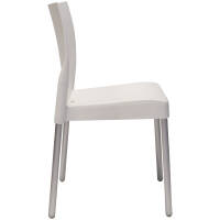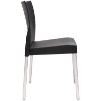With a plastic shell and aluminium legs this chair can be used in dining areas inside or outside.