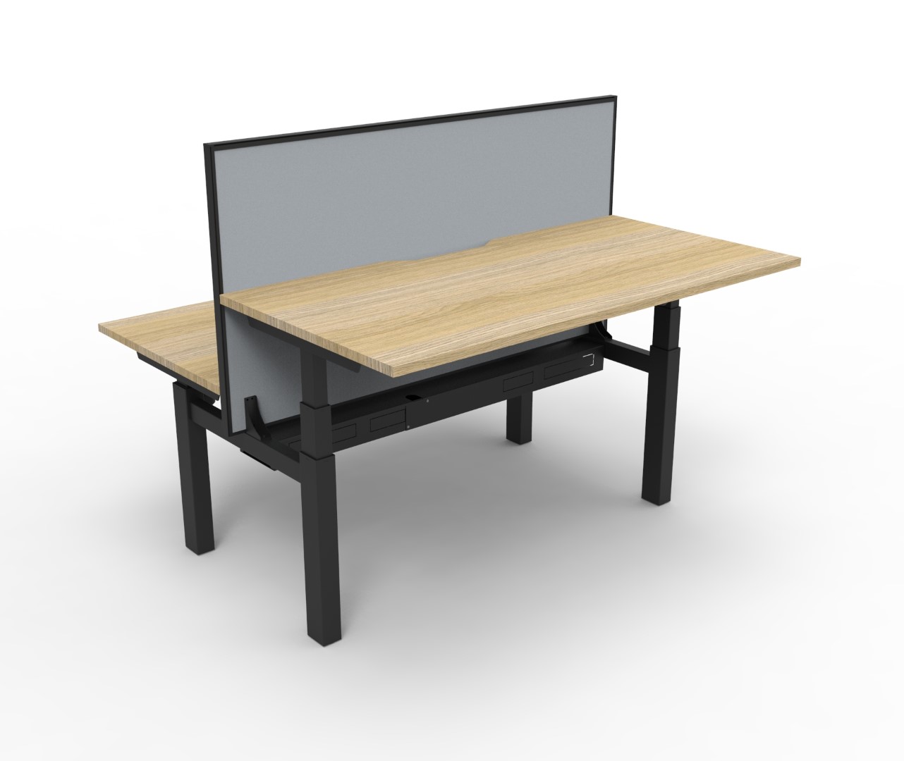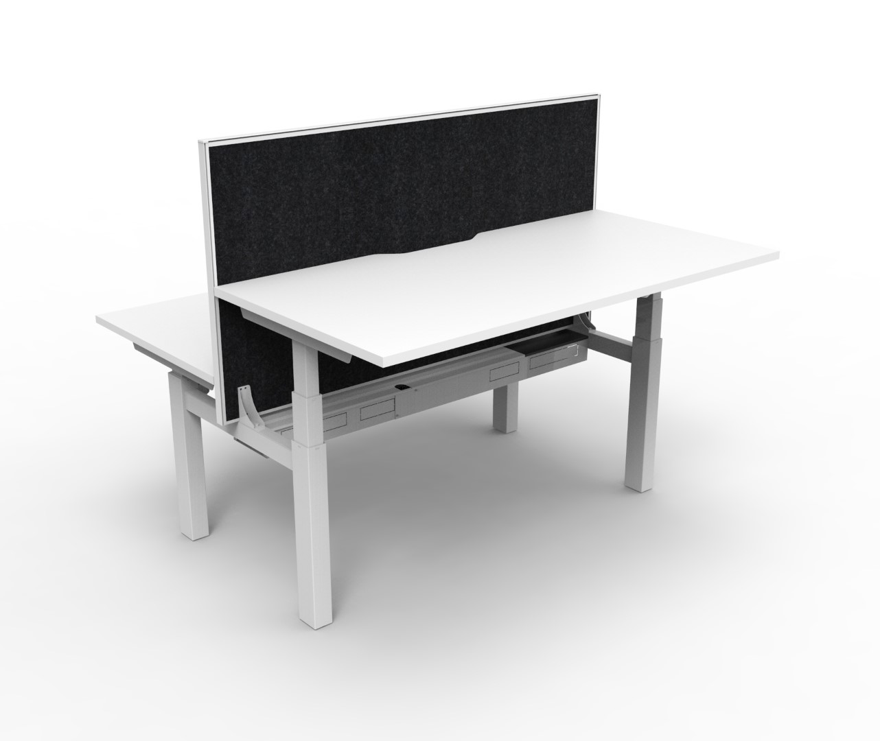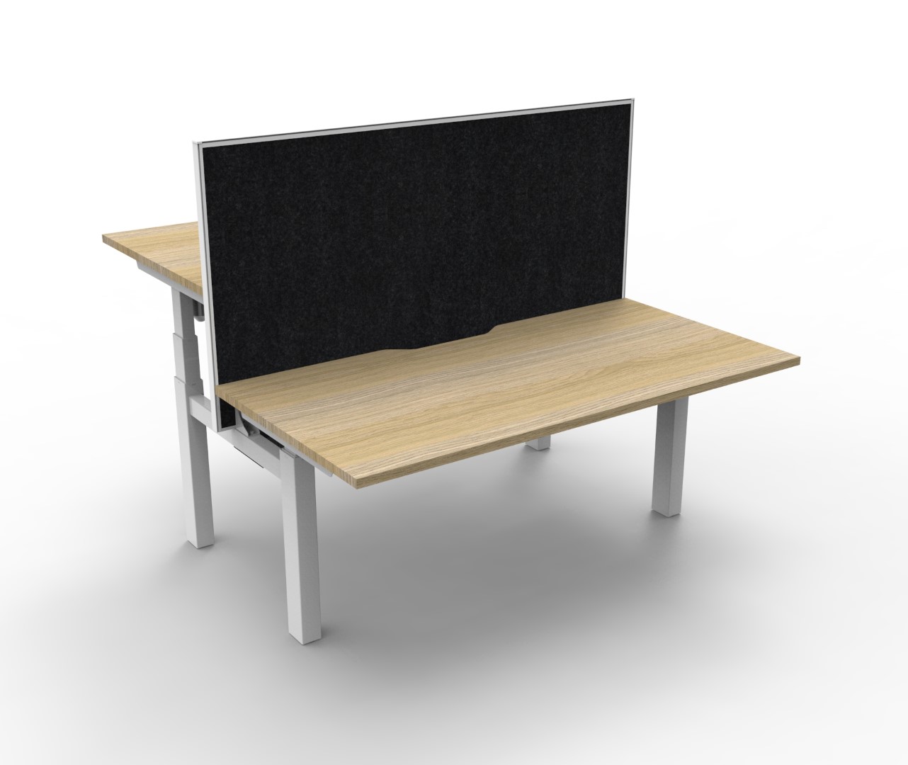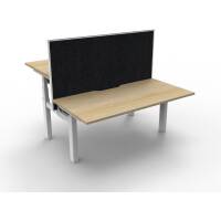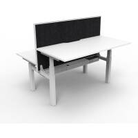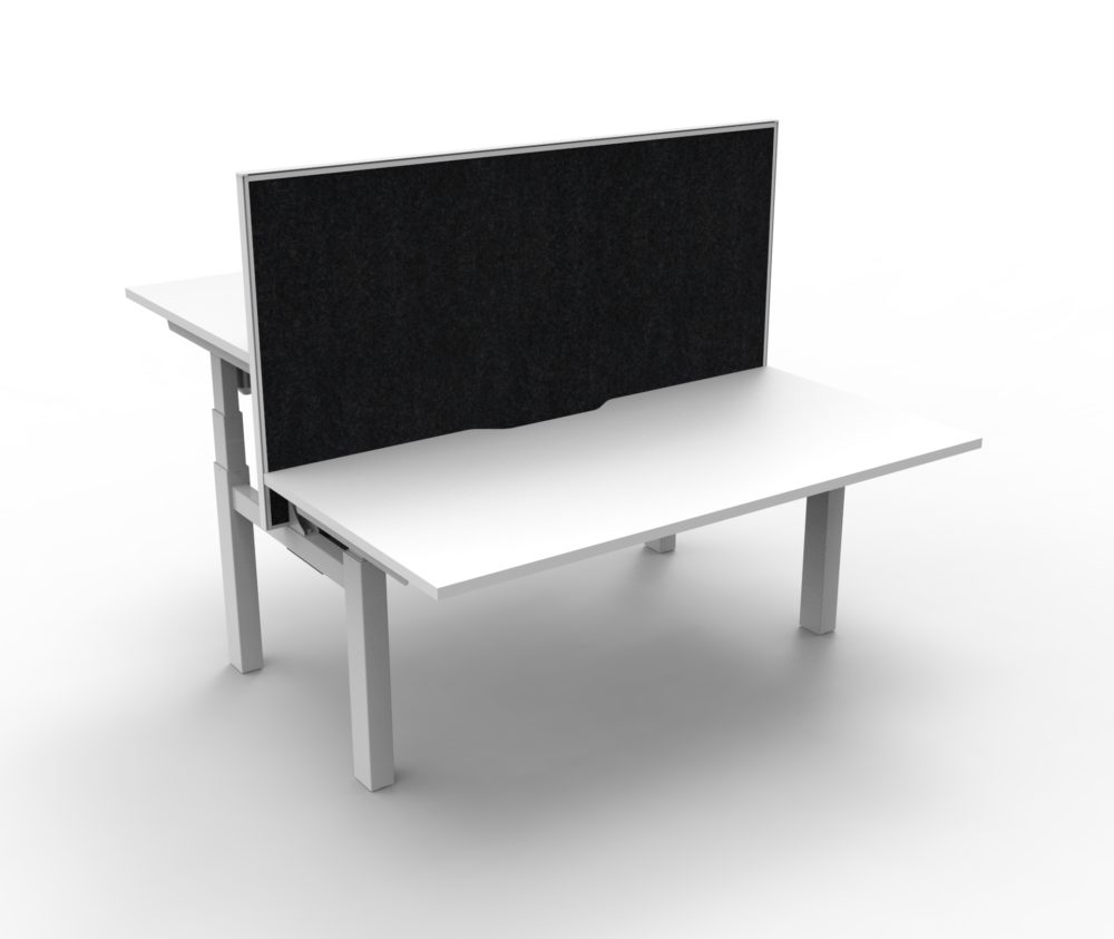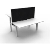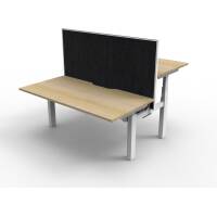 The back to back workstation allows 2 users to work at different desk height levels, with a dividing screen adding extra privacy and noise reduction.