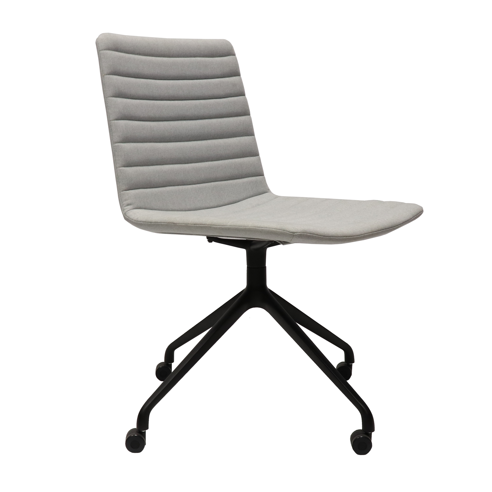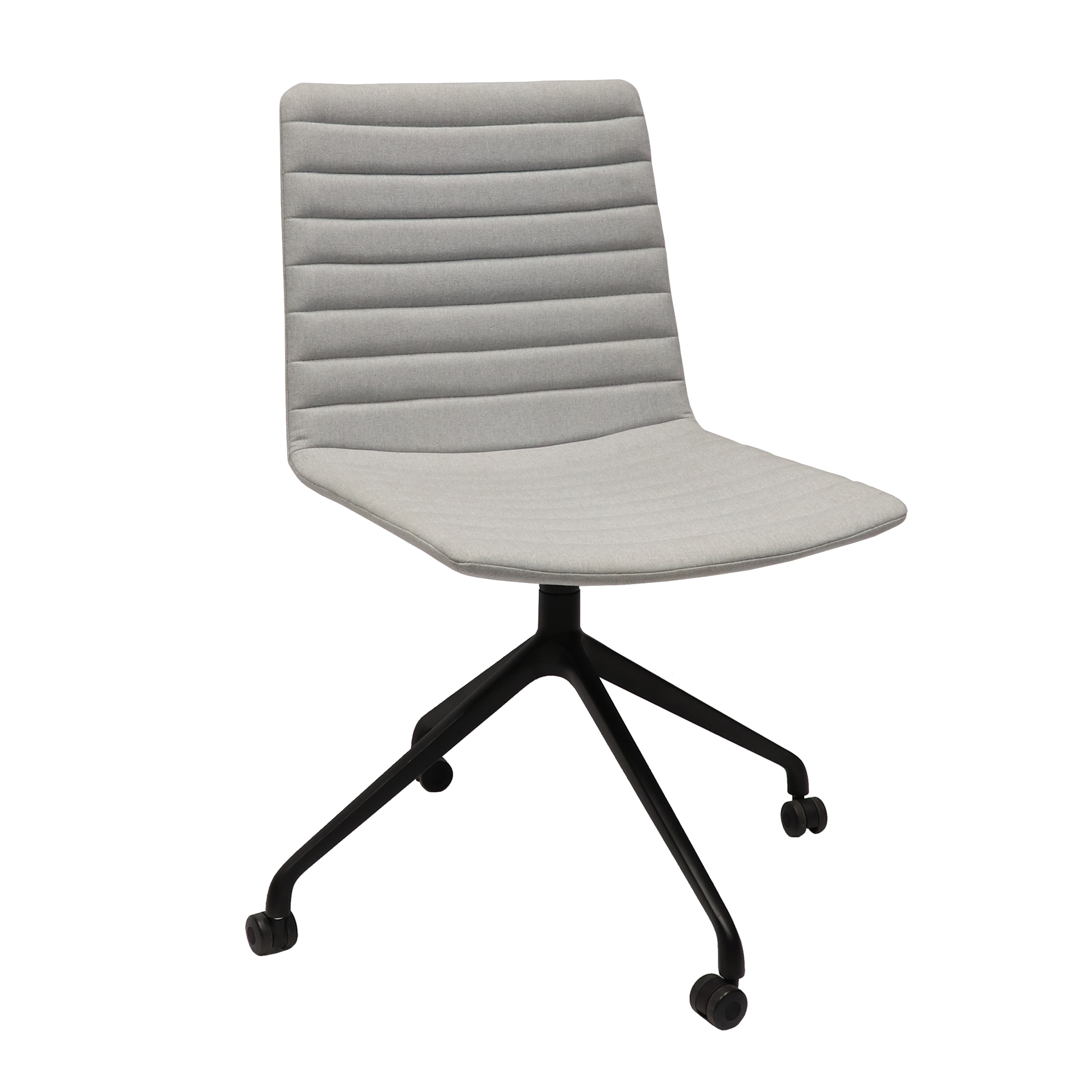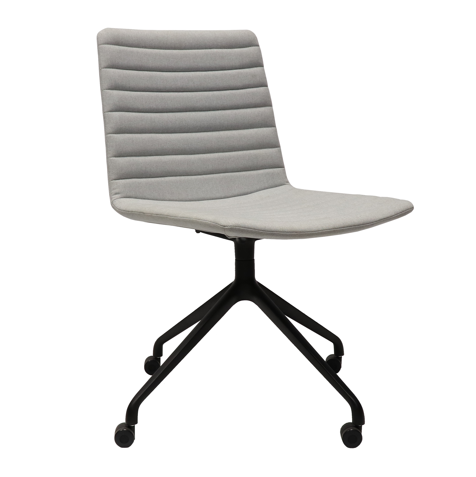 Pixel Swivel ChairLight Grey Fabric Upholstery on Black base with castorsRibbed Stitching Detail