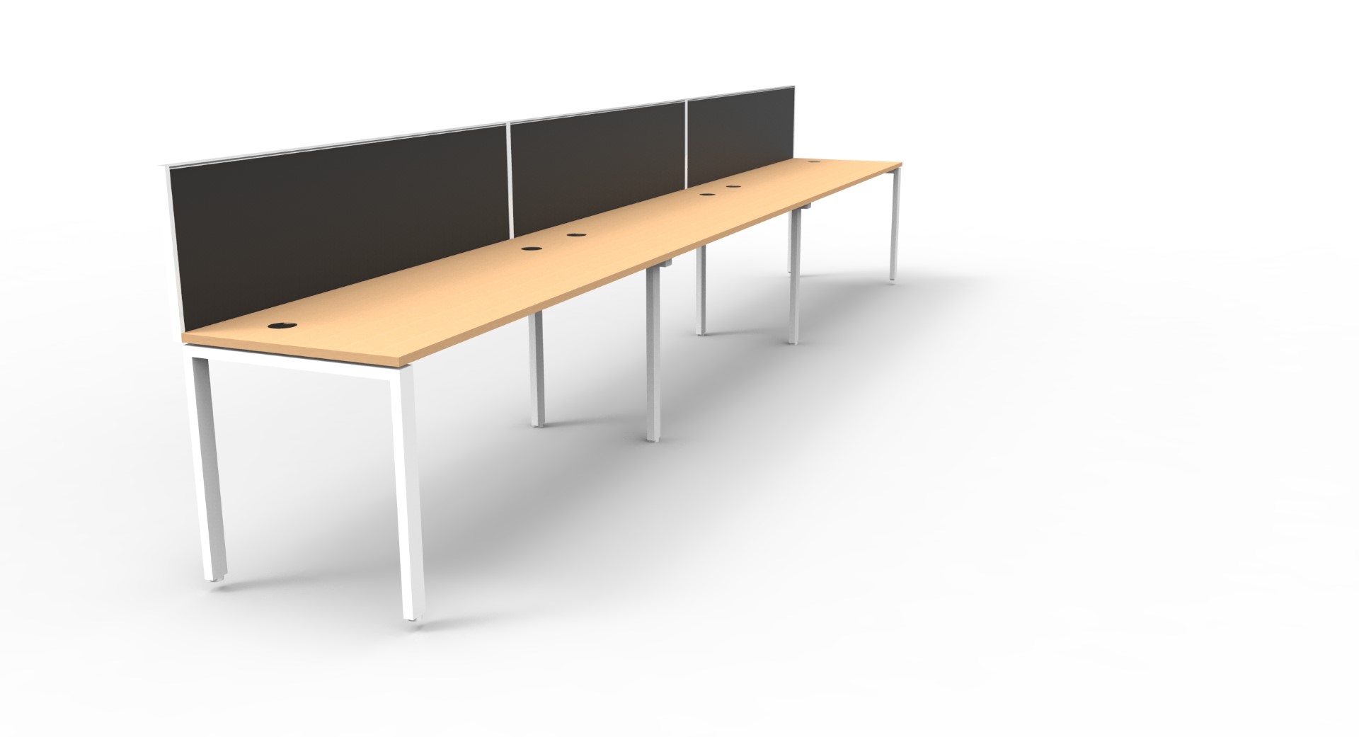 Maximise space and create an efficient working environment with Deluxe Rapid Infinity. 750mm deep enviroboard tops, with scallop for cable access, and a recessed leg to create full leg access in long runs of workstations.