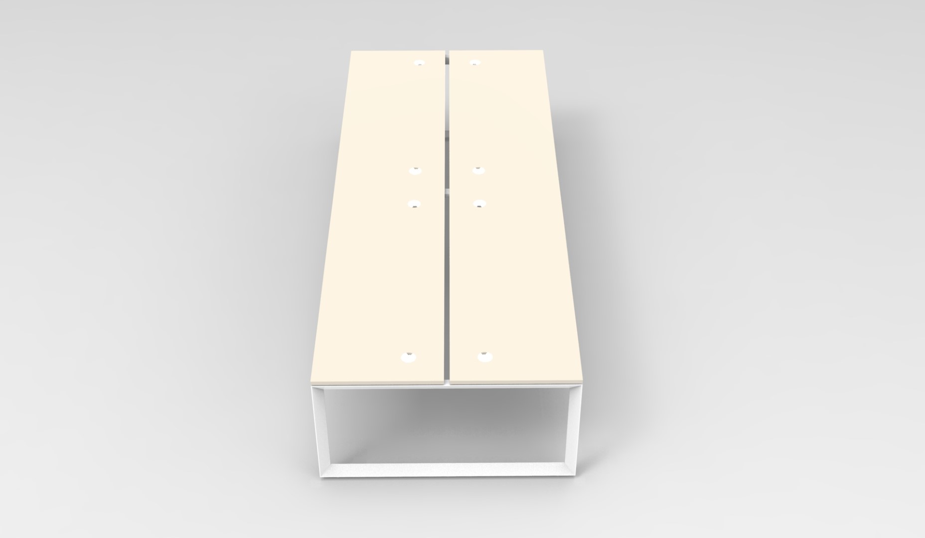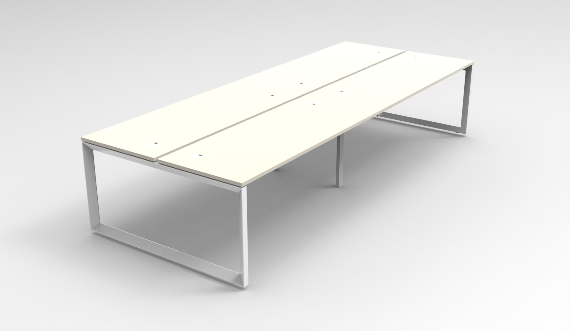 60mm x 45mm Bevelled Edge Loop Leg – White P/C – Dual Cross Bar For Added Stability – 30mm Cable Access Void In Between Double Sided Users