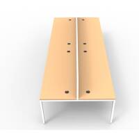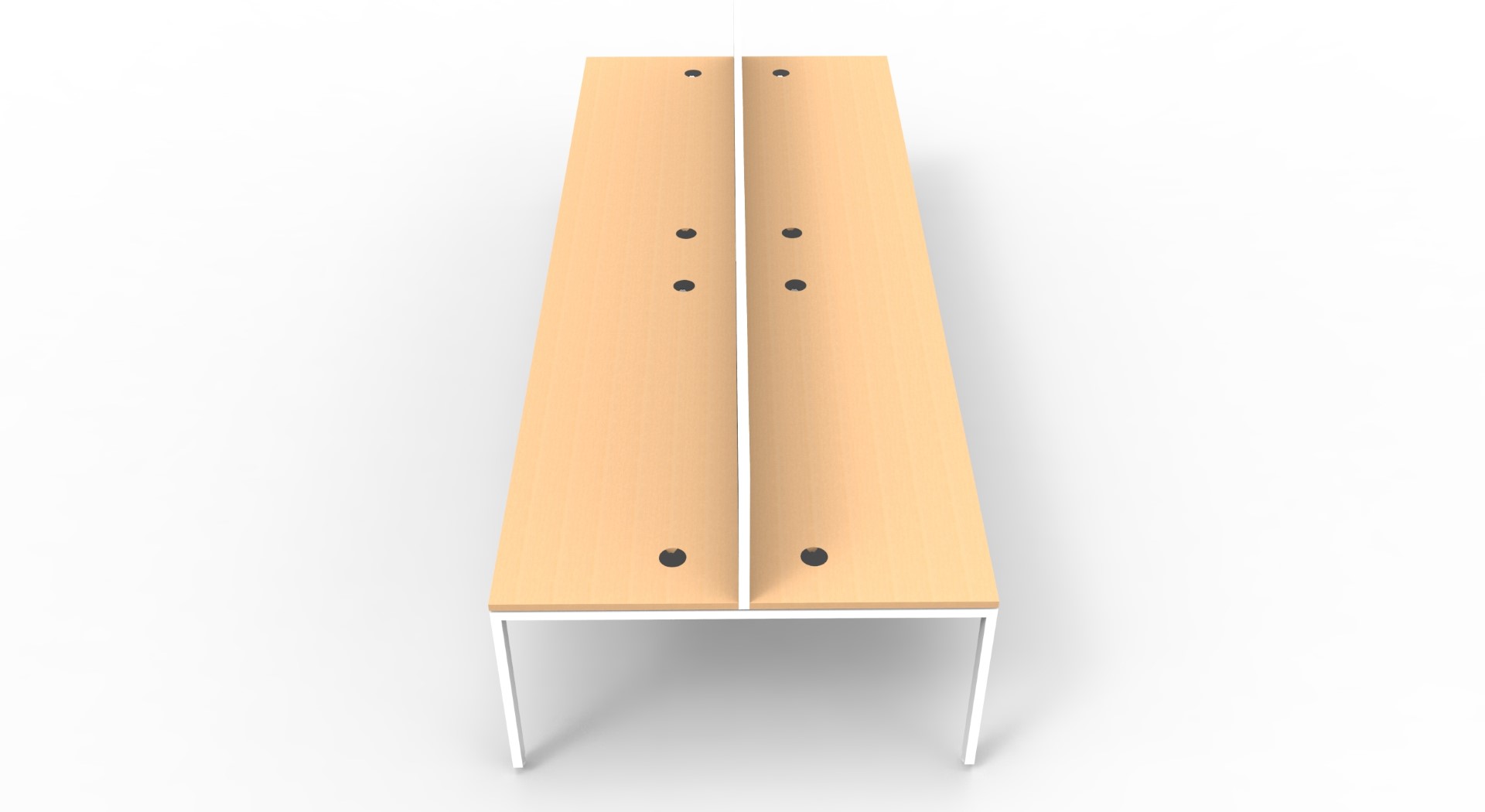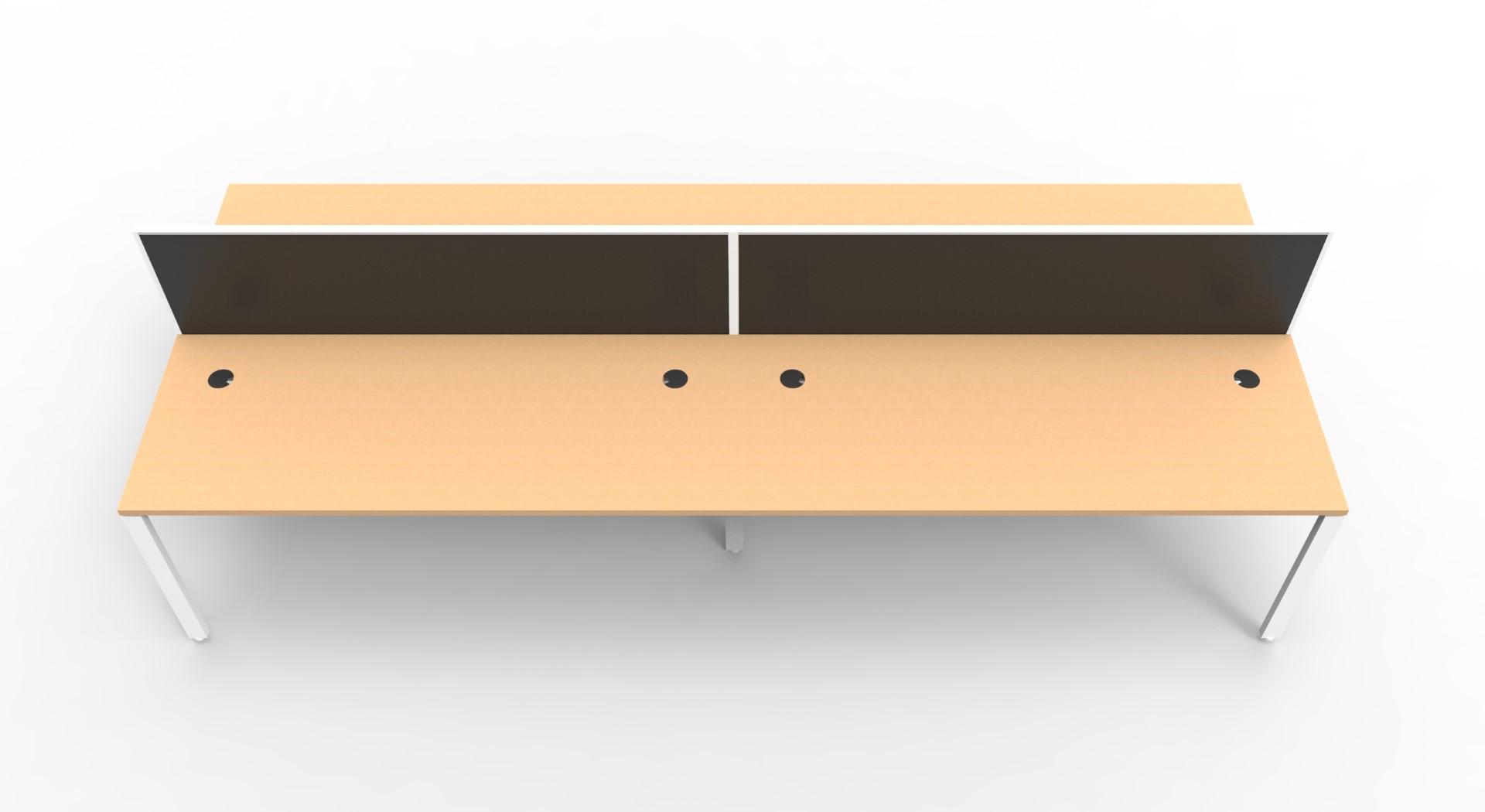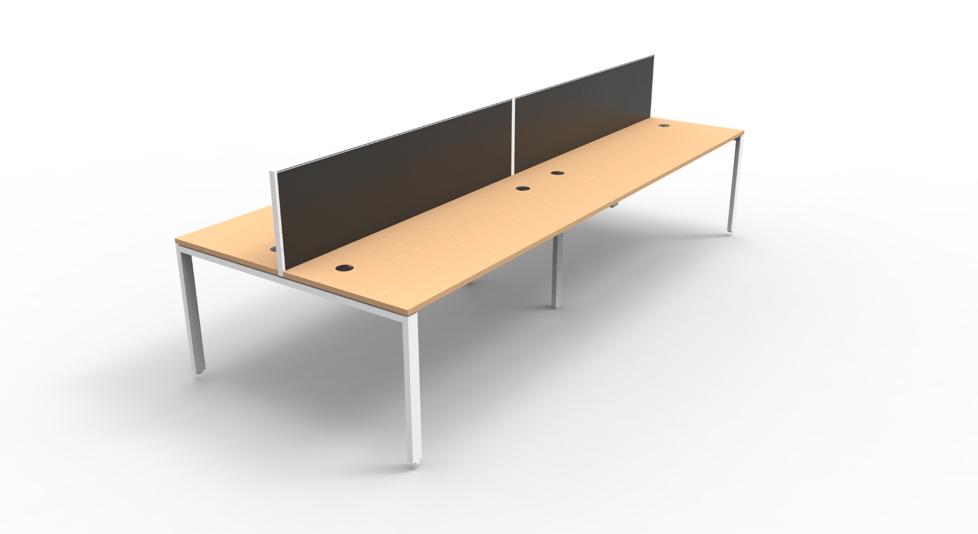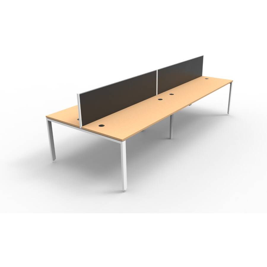 Maximise space and create an efficient working environment with Deluxe Rapid Infinity. 750mm deep Enviroboard tops, with scallop for cable access, and a recessed leg to create full leg access in long runs of workstations.