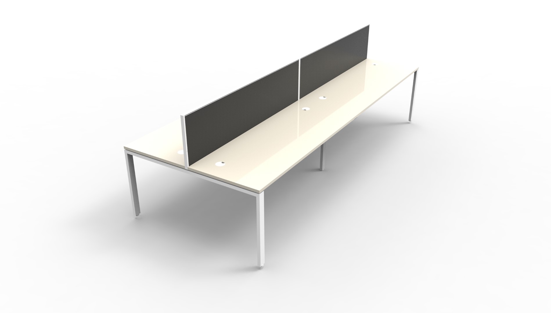 The 60 x 30 profile leg adds a minimalist look to each workstation run, and the matching dividing screen adds privacy and noise reduction to each workstation.