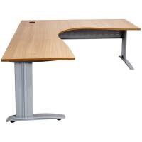 Corner workstations come with an E1 one piece top with cable tidy, perforated metal modesty panel and adjustable feet.
