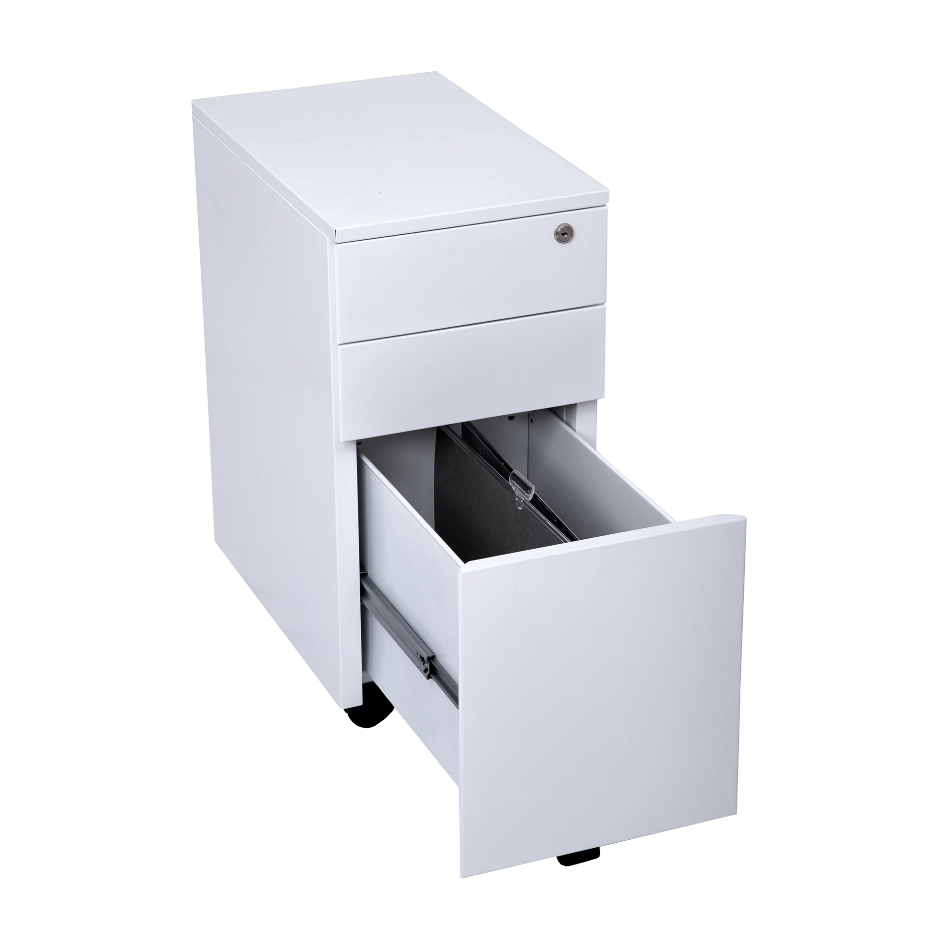 The Rapidline slimline mobile allows more leg room for users and takes foolscap folders back to front.