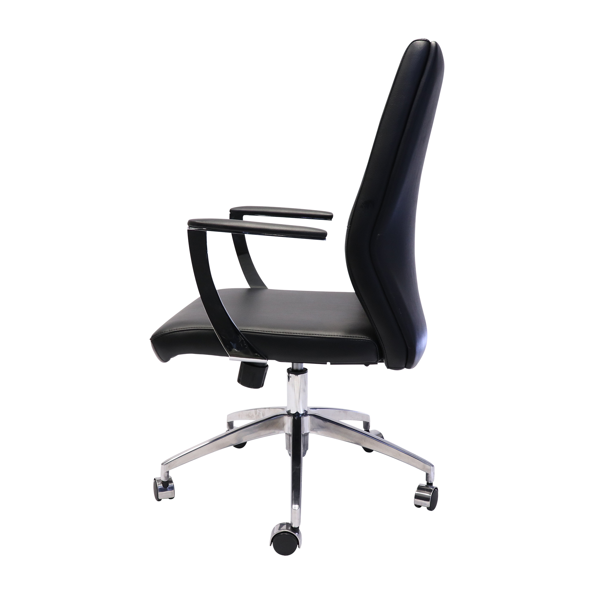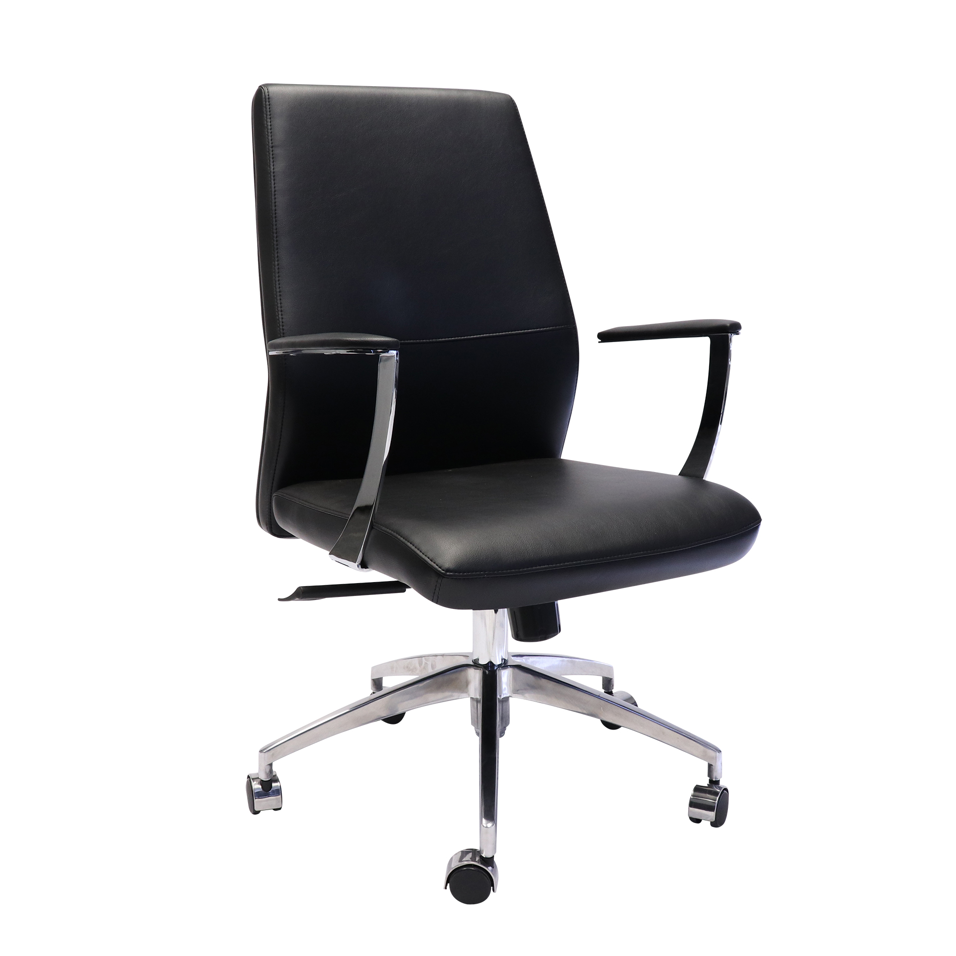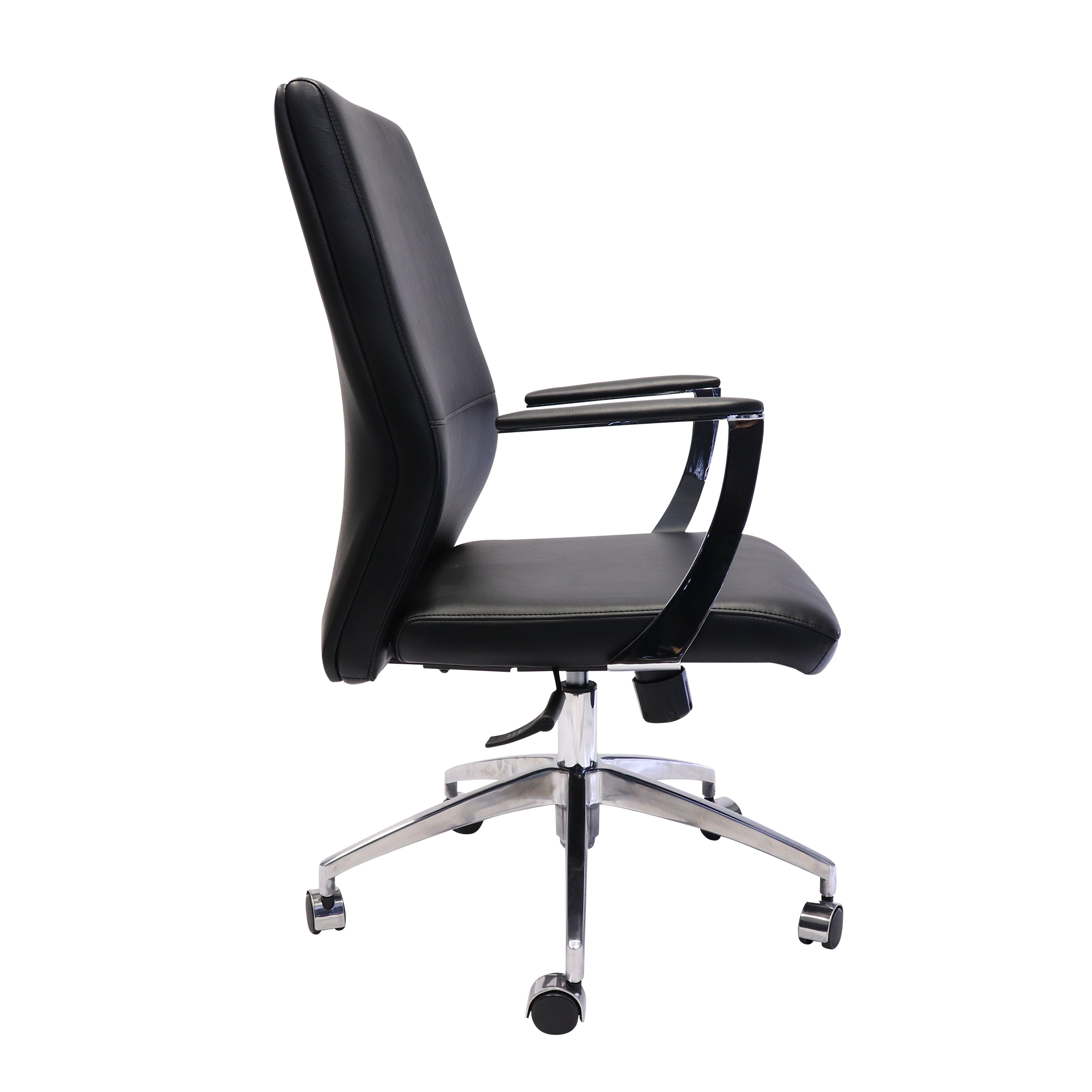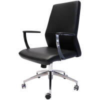 Rapidline slimline executive medium back chair with a 3 position lock mechanism to adjust seating angle, upholstered arm pads and polished aluminium arms and base.