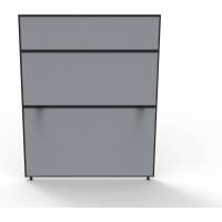 The SHUSH30 screen range features a 30mm slimline screen with a square profile, powder coat frame and a full fabric pinnable surface with adjustable levelling feet.