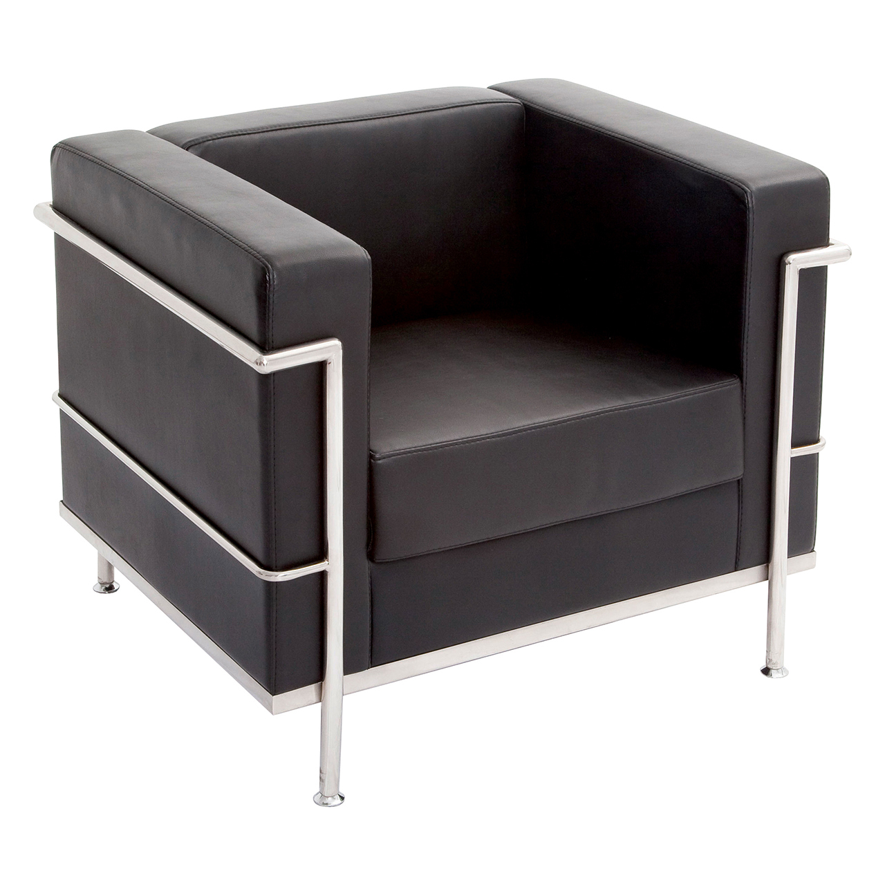 Enhance your reception area with this timeless design. Arm chair with chrome frame and feet and upholstered in cleanable black PU.
