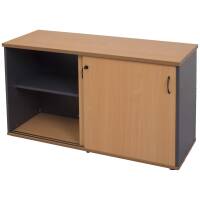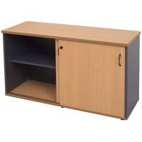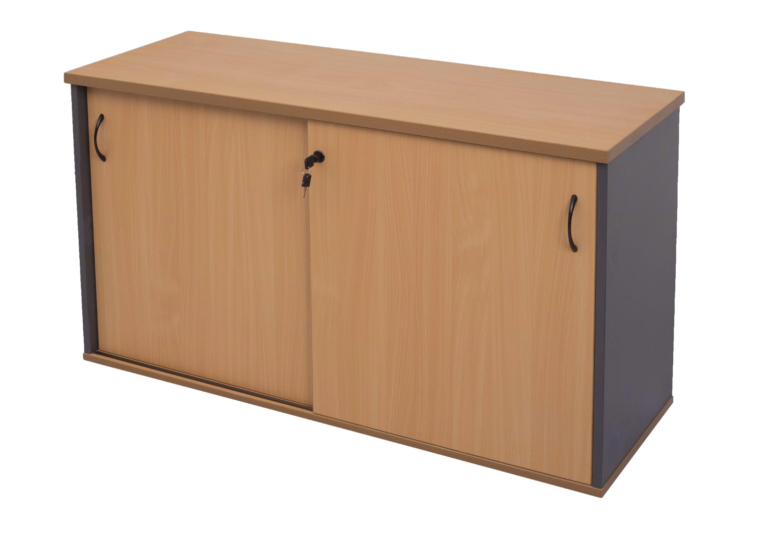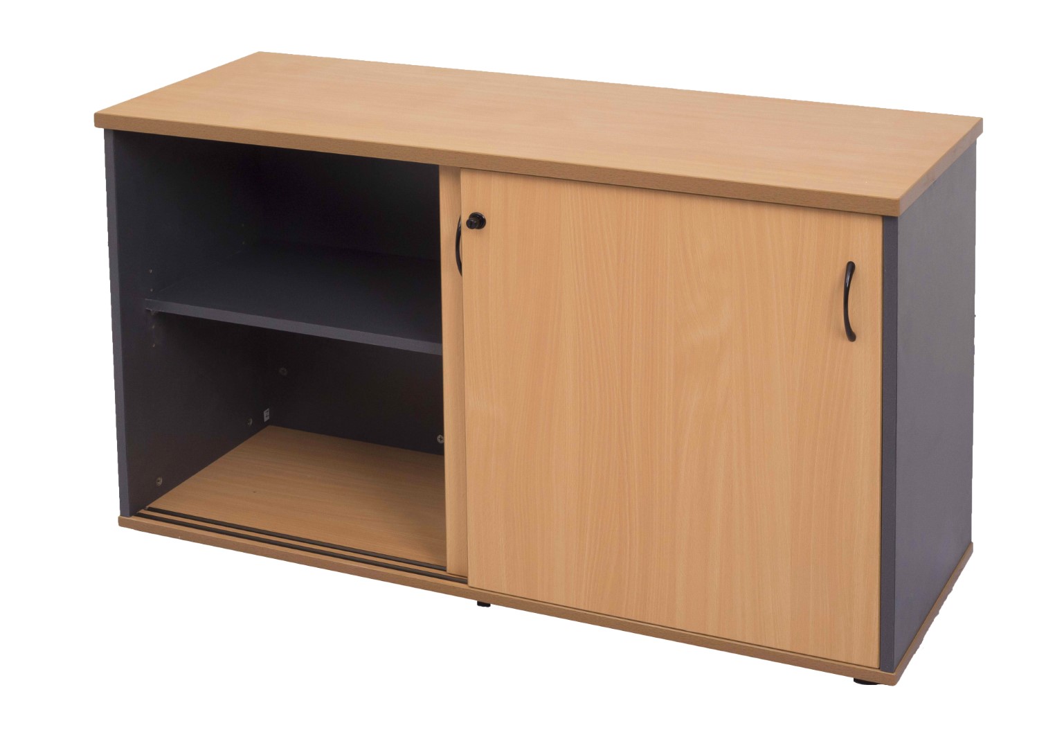 The sliding door credenza has sliding doors and an internal shelf, available in 3 sizes.