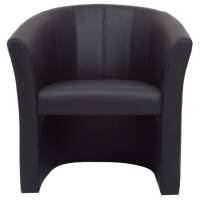 Larger tub chair, ideal for reception areas, with attractive flared arm rest and stitching detail on the back. Upholstered in cleanable black PU.